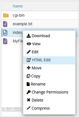 5. Right-click on the file and then on Edit or HTML Edit in the Context Menu.